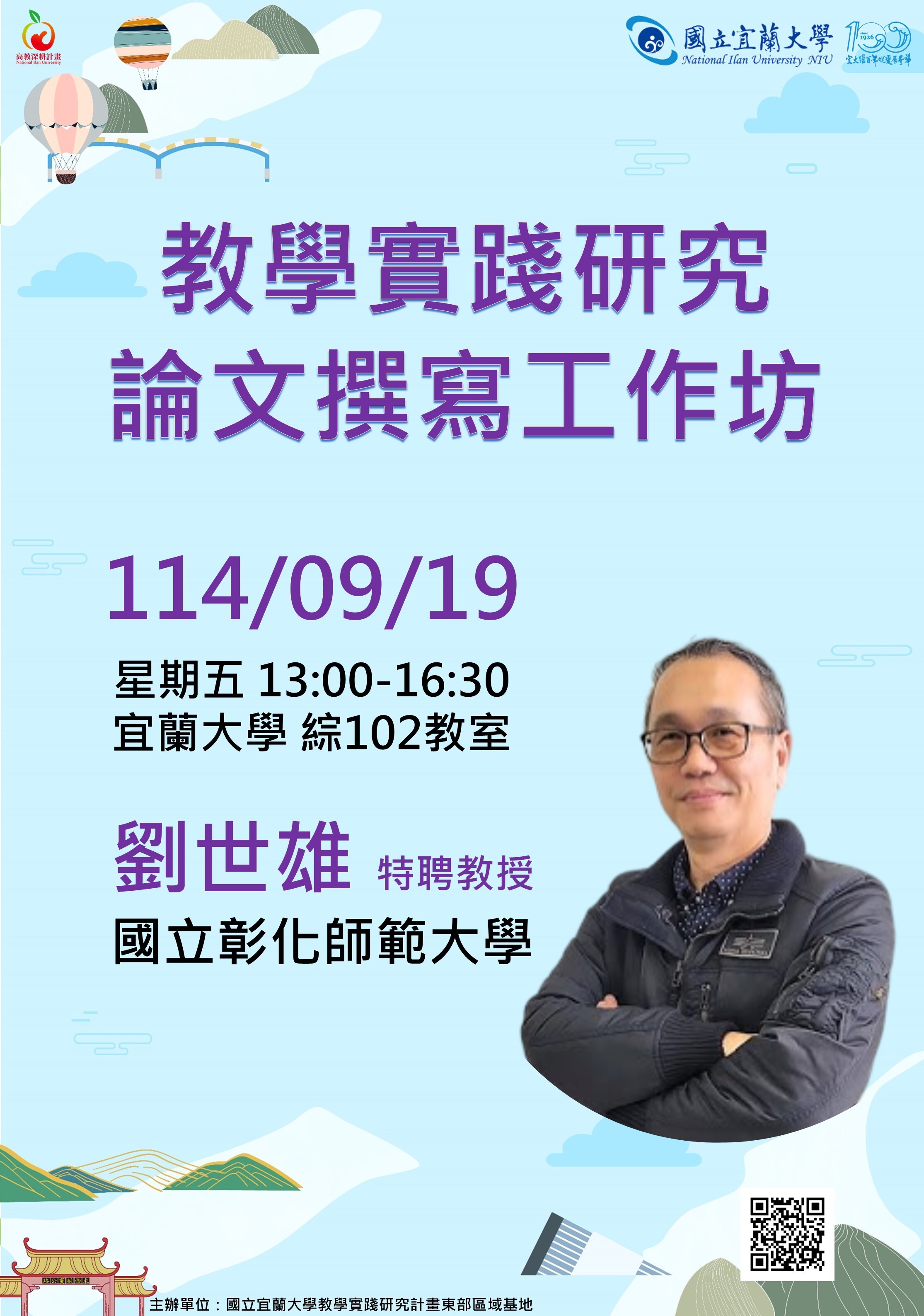 【東區基地】國立宜蘭大學114/09/19(五)「教學實踐研究論文撰寫工作坊」